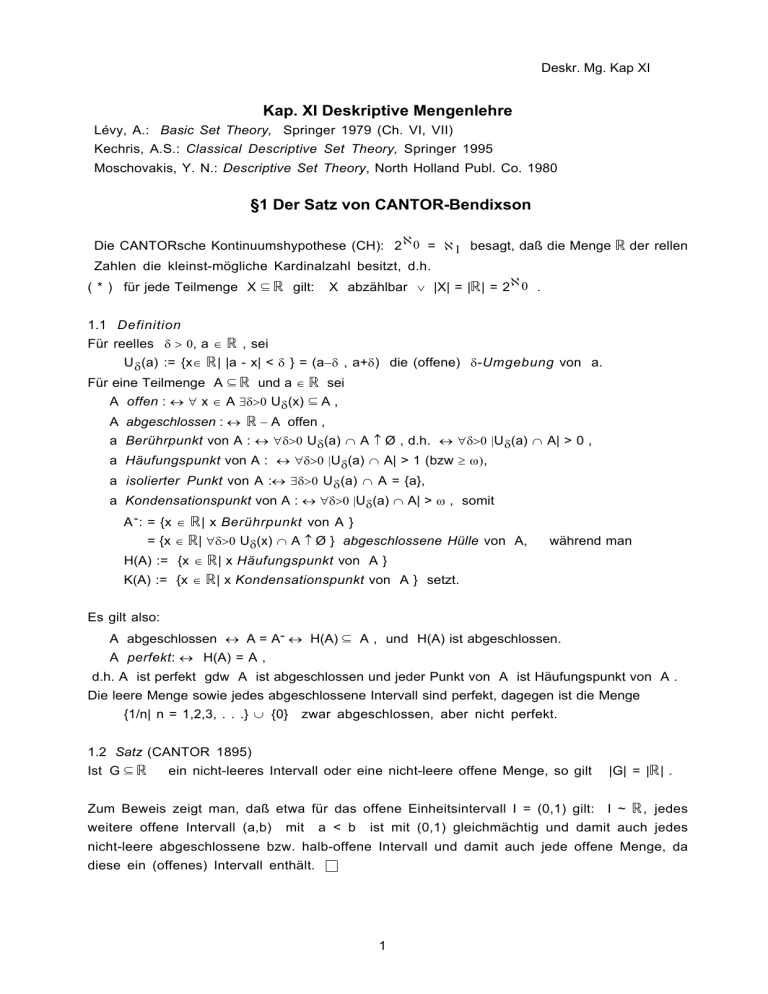 Kap. XI Deskriptive Mengenlehre