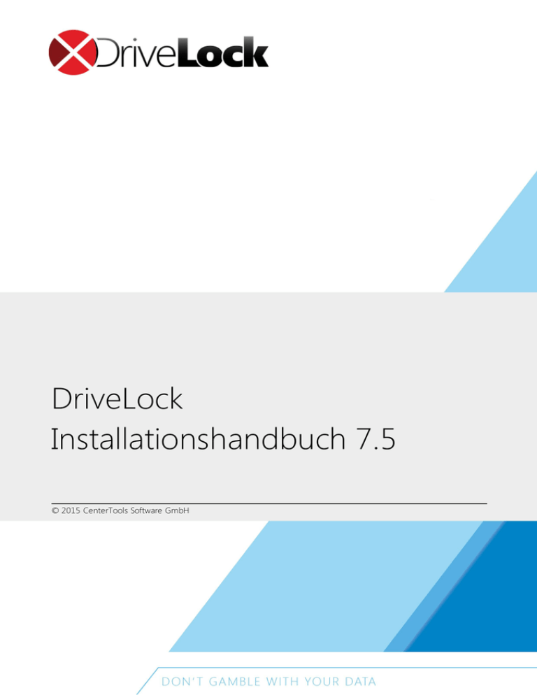 DriveLock Installationshandbuch 7.5 © 2015 CenterTools Software GmbH DriveLock Installationshandbuch Inhaltsverzeichnis Teil I Konventionen 4 Teil II Datensicherheit mit DriveLock 6 Die Komponenten von DriveLock 6 1 Der Agent Die DriveLock Management Konsole Das DriveLock Control Center DriveLock Enterprise Service 2 7 7 7 7 Gesamtstruktur 8 Gesamtstruktur im gemischten Betrieb mit alten DriveLock 5 Agenten (Legacy) Verlinkte DriveLock Enterprise Service Teil III 1 9 10 Vorbereitung der Installation 13 Schnellkonfiguration mit mDNS/DNS-SD 14 Deaktivieren von mDNS/DNS-SD 15 Teil IV Systemanforderungen 17 Teil V DriveLock installieren 20 1 Testinstallation (Evaluierung) 20 2 Installation des DriveLock Enterprise Service 20 3 Installation der DriveLock Management-Komponenten 28 4 Installation des DriveLock Agenten 30 DriveLock Installation mit Active Directory Gruppenrichtlinien Installation des Agenten bei Verwendung von Konfigurationsdateien Installation bei Verwendung einer zentral gespeicherten Richtlinie Installation mit Kommandozeilenparametern (unbeaufsichtigte Installation) Installation der DriveLock FDE Komponente 31 33 38 42 43 46 DriveLock aktualisieren Teil VI 1 DriveLock Enterprise Service aktualisieren 46 2 DriveLock Control Center aktualisieren 50 3 DriveLock Management Konsole aktualisieren 50 4 DriveLock Agenten aktualisieren 50 Aktualisierung der DriveLock FDE Komponente 51 Teil VII DriveLock deinstallieren 53 Teil VIII Migration einer alten Security Reporting Center Datenbank 55 DriveLock Installationshandbuch 7.5 2 © 2015 CenterTools Software GmbH Teil I Konventionen Konventionen 1 Konventionen In diesem Dokument werden durchgängig folgende Konventionen und Symbole verwendet, um wichtige Aspekte hervorzuheben oder Objekte zu visualisieren. Achtung: Rote r T e xt we i st auf Ri si ke n hi n, di e be i spi e l swe i se zu Date nve rl ust f ühre n könne n Hinweise und Tipps enthalten nützliche Zusatzinformationen. Me nüe i nträge oder die Namen von Schal tf l äche n sind fett dargestellt. Kursive Schrift repräsentiert Felder, Menüpunkte und Querverweise. Systemschrift stellt Nachrichten oder Befehle auf Basis der Kommandozeile dar. Ein Pluszeichen zwischen zwei Tasten bedeutet, dass diese gleichzeitig gedrückt werden müssen; „ALT + R“ beispielsweise signalisiert das Halten der ALT-Taste, während R gedrückt wird. Ein Komma zwischen mehreren Tasten fordert ein Nacheinander drücken der jeweiligen Tasten. „ALT, R, U” bedeutet, dass zunächst die ALT-Taste, dann die R- und zuletzt die U-Taste betätigt werden muss. DriveLock Installationshandbuch 7.5 4 © 2015 CenterTools Software GmbH Teil II Datensicherheit mit DriveLock Datensicherheit mit DriveLock 2 Datensicherheit mit DriveLock CenterTools DriveLock ist eine Softwarelösung zur Absicherung von Clientrechnern. Es besitzt eine multilinguale Benutzeroberfläche, deren Sprache während der Installation oder Ausführung ausgewählt werden kann und bietet dynamisch konfigurierbaren Zugriff für Laufwerke (Disketten, CD-ROMs, USB-Sticks etc.) und kontrolliert die meisten anderen Gerätetypen wie z.B. Bluetooth, Palm, Windows Mobile, BlackBerry, Smartphones. Durch Konfiguration von Whitelist-Regeln (basierend auf Gerätetyp und Hardware ID) kann exakt spezifiziert werden, wer welches Gerät zu welcher Zeit nutzen kann. Mobile Laufwerke können anhand der Hersteller-, Produkt- & Seriennummer kontrolliert werden, was exakte Definierung und Durchsetzung von Zugriffsrichtlinien erlaubt. Weitere Merkmale ermöglichen das Entsperren bestimmter autorisierter Medien sowie das Setzen von Zeitlimits und Computern für Whitelist-Regeln. Auch die temporäre Deaktivierung der Kontrolle durch DriveLock ist möglich, selbst wenn der Rechner offline und nicht mit einem Netzwerk verbunden ist. Die Installation der Clientsoftware (DriveLock Agent) und die Verteilung der Regeln kann einfach durch Nutzung vorhandener Softwareverteilungsmechanismen geschehen oder unter Zuhilfenahme der Gruppenrichtlinien des Active Directory. Alternativ können Richtlinien auch durch Konfigurationsdateien für Einzelrechner oder Umgebungen ohne Active Directory (z.B. Novell) verteilt werden. Die Überwachungsmöglichkeiten von DriveLock in Zusammenspiel mit der Schattenkopie-Funktionalität liefern den erforderlichen Grad an Kontrolle und Informationen, um die Einhaltung bestehender Richtlinien durchzusetzen. Durch Einsatz des DriveLock Device Scanners kann jedes Laufwerk oder Gerät im Netzwerk aufgespürt werden, auch wenn dies nicht mehr mit dem entsprechenden Rechner verbunden ist. Die Nutzung des DriveLock Device Scanner ist nicht an das Vorhandensein des DriveLock Agenten gebunden. Verschlüsselung ist ein weiteres Hauptmerkmal von DriveLock. Dabei kann die Verschlüsselung erzwungen werden, wenn z.B. Daten auf mobile Laufwerke kopiert werden oder durch Verschlüsselung des kompletten Laufwerkes, um sensible Daten zu schützen. Des Weiteren kann DriveLock auch kritische Daten auf sichere Weise löschen, durch mehrmaliges Überschreiben von Daten unter Nutzung anerkannter Industriestandards. Der DriveLock Anwendungsblocker ermöglicht eine einfache Kontrolle über alle Anwendungen, die von einem Benutzer gestartet werden könnten. Sie können das Starten von Applikationen anhand von verschiedenen Kriterien, wie z.B. Benutzer oder Gruppen, aktuelle Netzwerkumgebungen oder dem aktuellem Computer, erlauben oder verweigern. DriveLock Antivirus passt sich aktuellen Umgebungen und Anforderungen Ihrer Sicherheitsrichtlinien an. So können externe Datenträger sensibler behandelt werden und z.B. mit einer strengeren Heuristik geprüft werden, bevor der Endbenutzer Zugriff auf das Laufwerk erhält. Der DriveLock Enterprise Service (DES) ist die zentrale Datenbank und Berichtskonsole von DriveLock. Der DES sammelt alle DriveLock-Ereignisse und Resultate des Device Scanners in einer Datenbank. Administratoren können diese Daten für die dynamische G