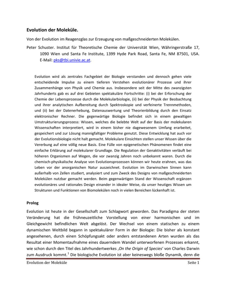 Peter Schuster. Institut für Theoretische Chemie der Universität Wien, Währingerstraße 17,