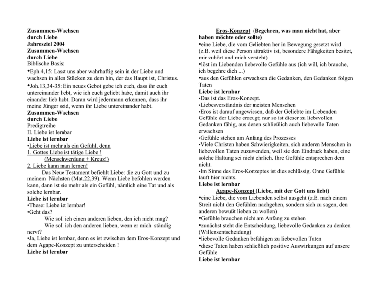 •Bewußt: Bereitschaft, lieben zu wollen (Joh.15,12)