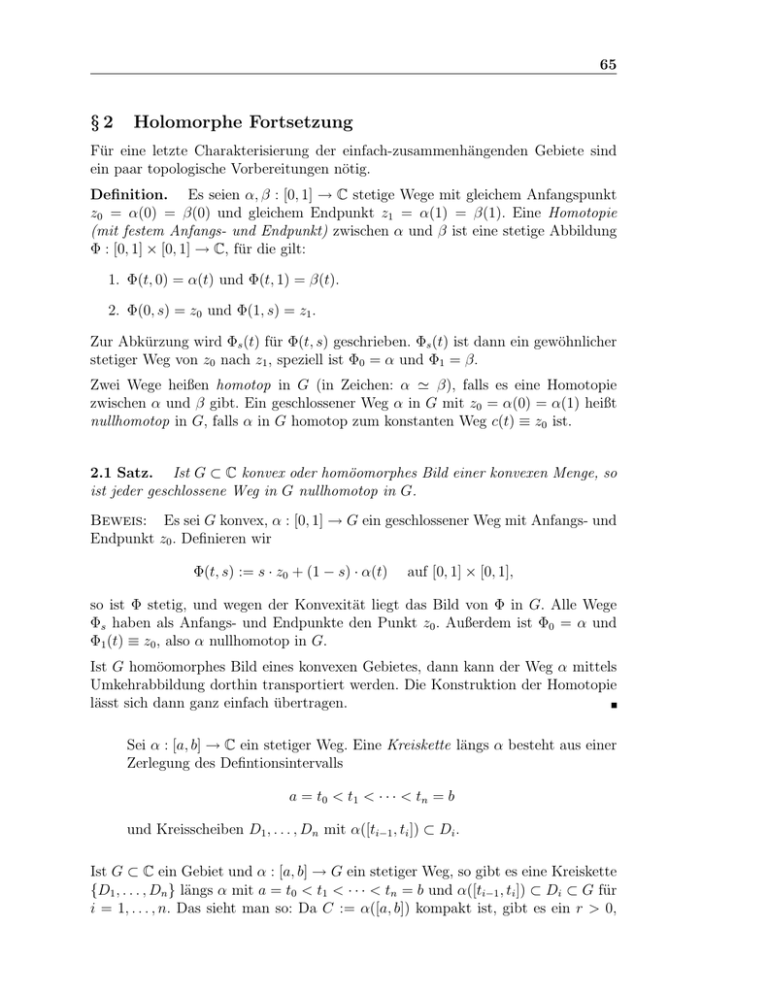{D1 , . . . , Dn } längs α mit a = t0 < t1 < · · · < tn = b und α([ti−1 , ti ]) ⊂ Di ⊂ G für